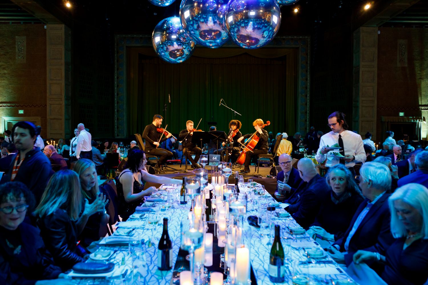 Following the reception, guests moved upstairs to the Kridel Grand Ballroom for dinner. Award-winning local sports anchor Tyree Smith led the evening as Master of Ceremonies, supported by a musical soundtrack from the Metropolitan Youth Symphony and 45th Parallel Ensemble. A three-course meal and selection of wines were provided by Art of Catering and several Oregon wineries.