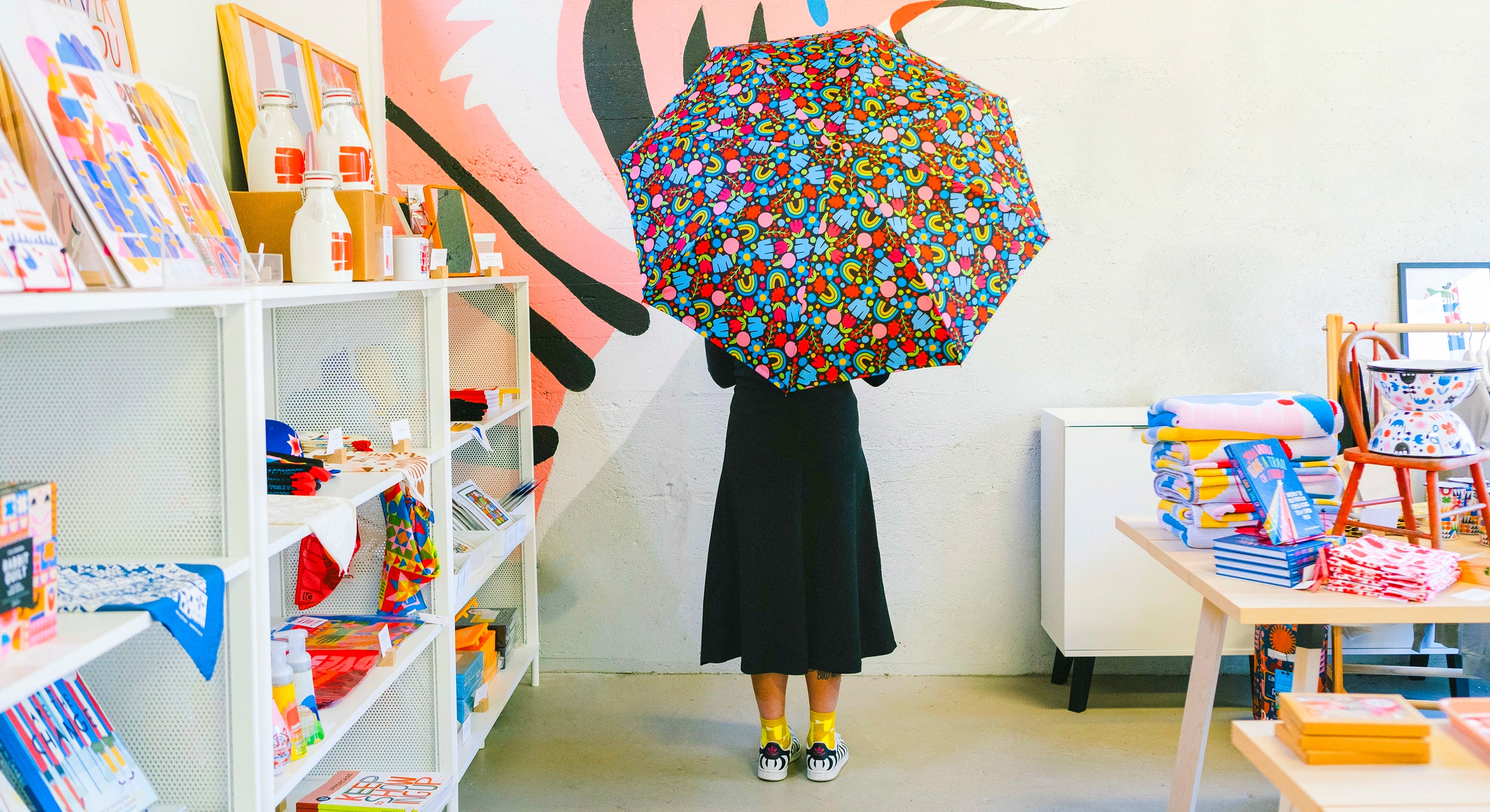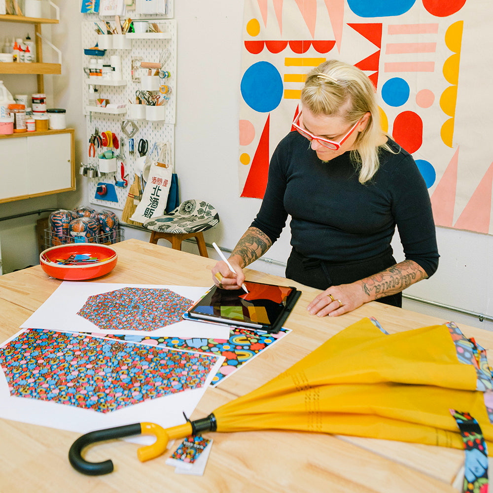 We have teamed up with three artists of varying disciplines to launch a collection of stylish umbrellas with canopies that reflect each designer’s unique point of view. Our collaboration will allow some of their creative work to walk the streets of the country, bringing beauty and art to communities on-the-go.