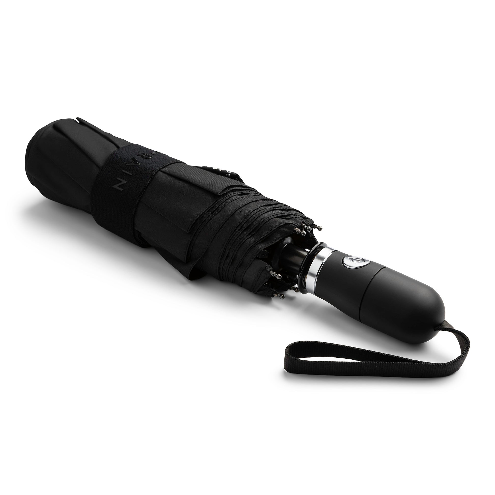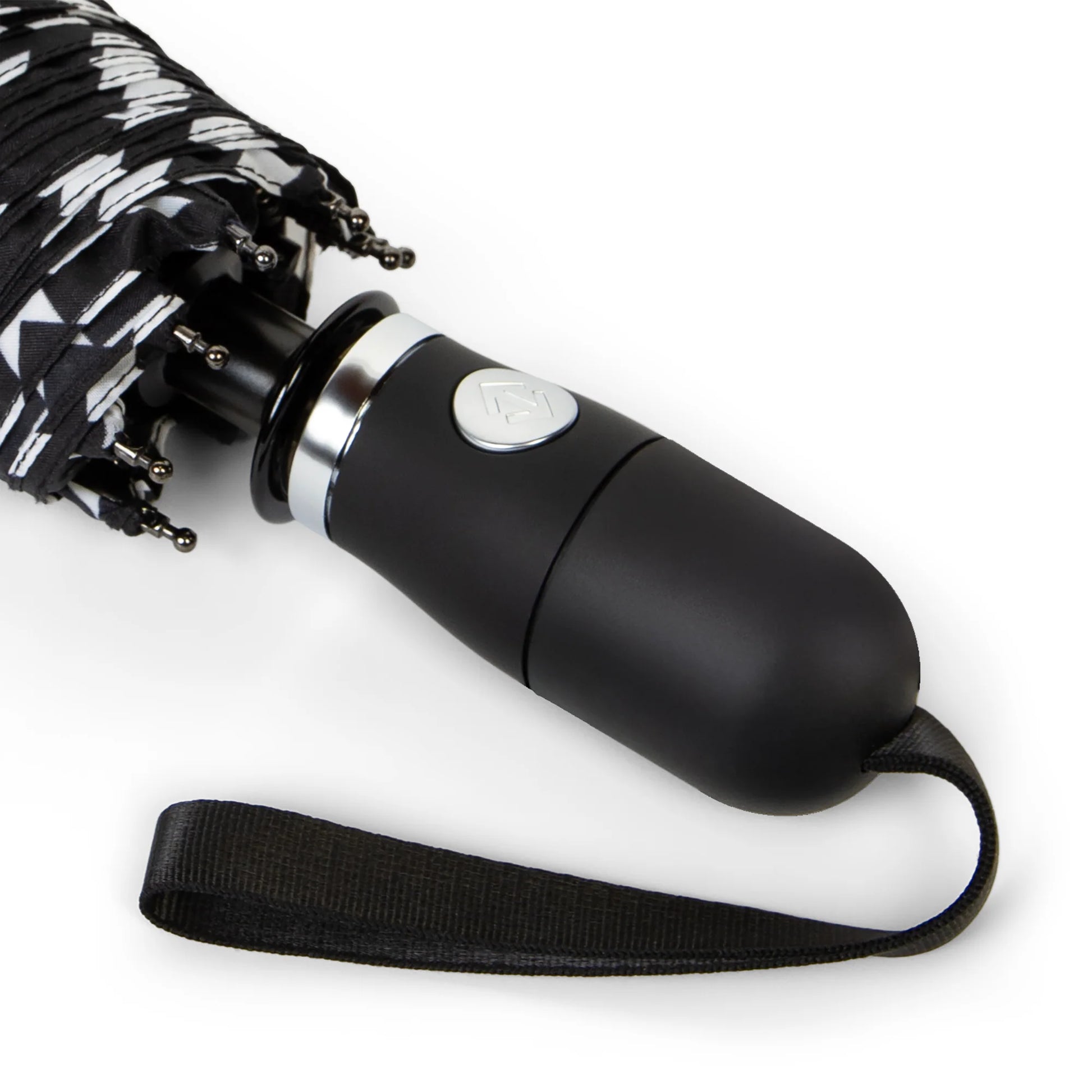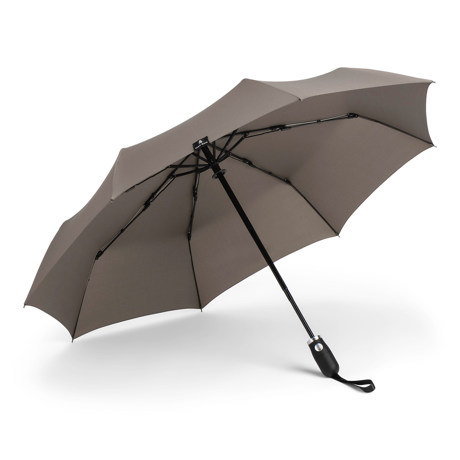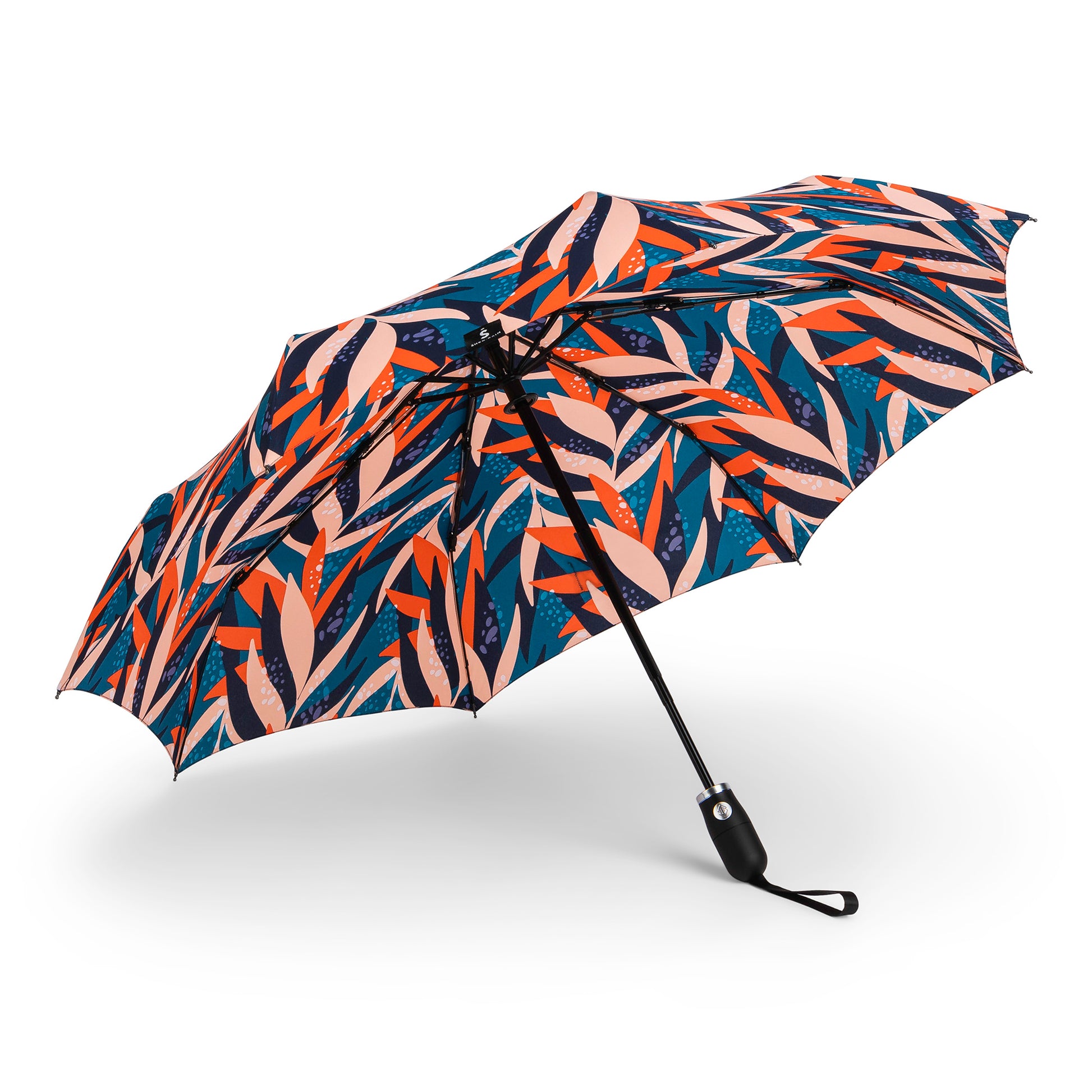 Combining convenience and practicality, this may be our best windproof compact umbrella for travel or commuting. With our automatic open and close function, it provides shelter at the push of a button. The lightweight-yet-durable fiberglass frame featuring Wind-Reflex™ technology stands strong even in heavy wind and rain. And the recycled-polyester canopy boasts a roomy 43 inches of coverage with a Nanoskin® water-repellant coating. Best of all, it packs down to less than a pound and just 12 inches in length—making it an ideal everyday-carry umbrella.