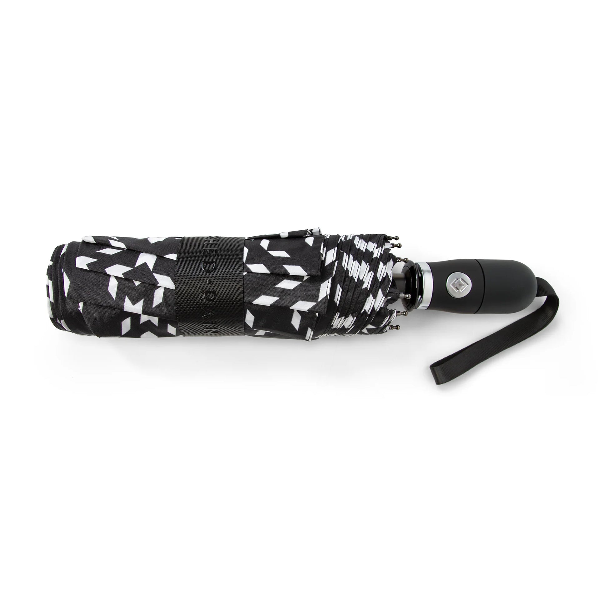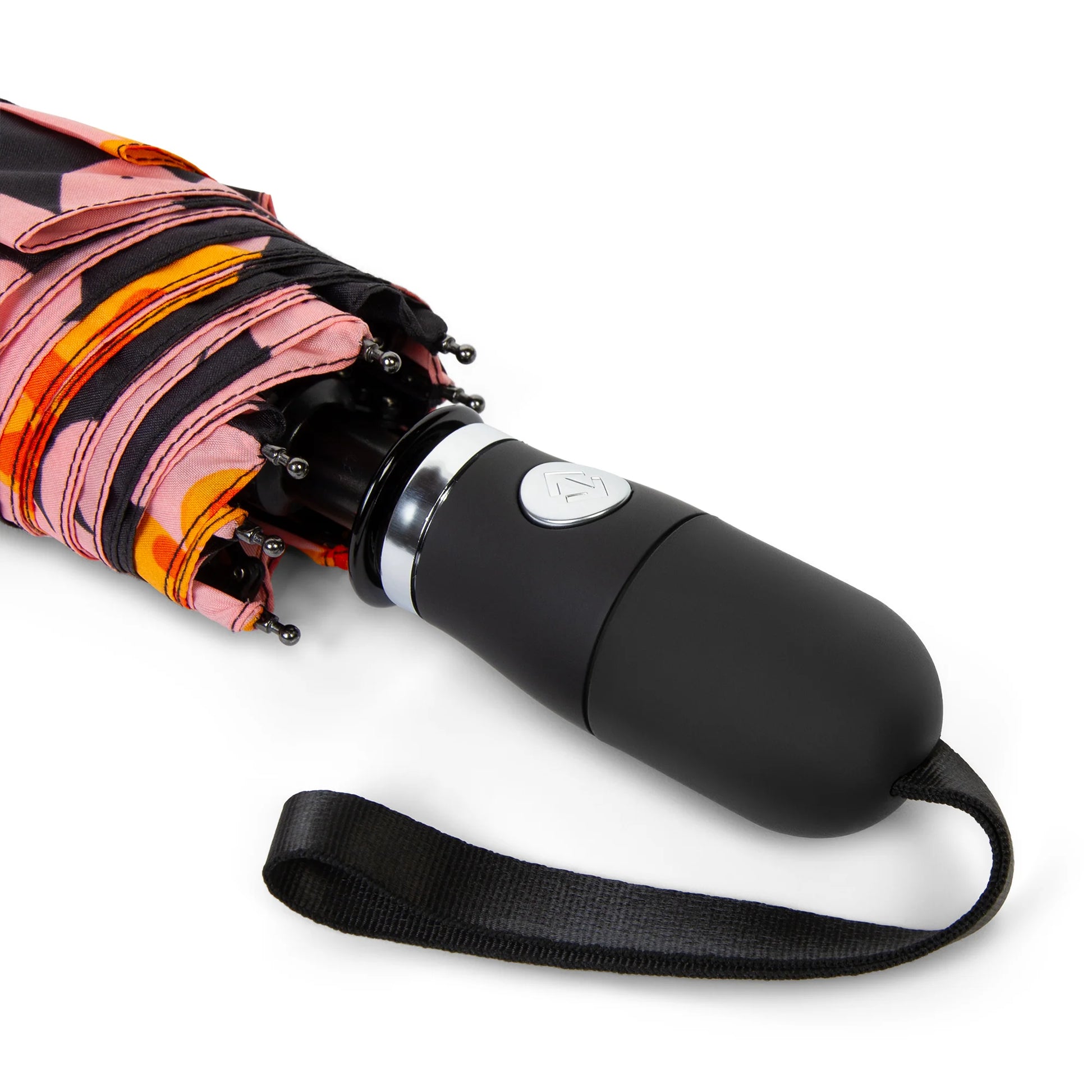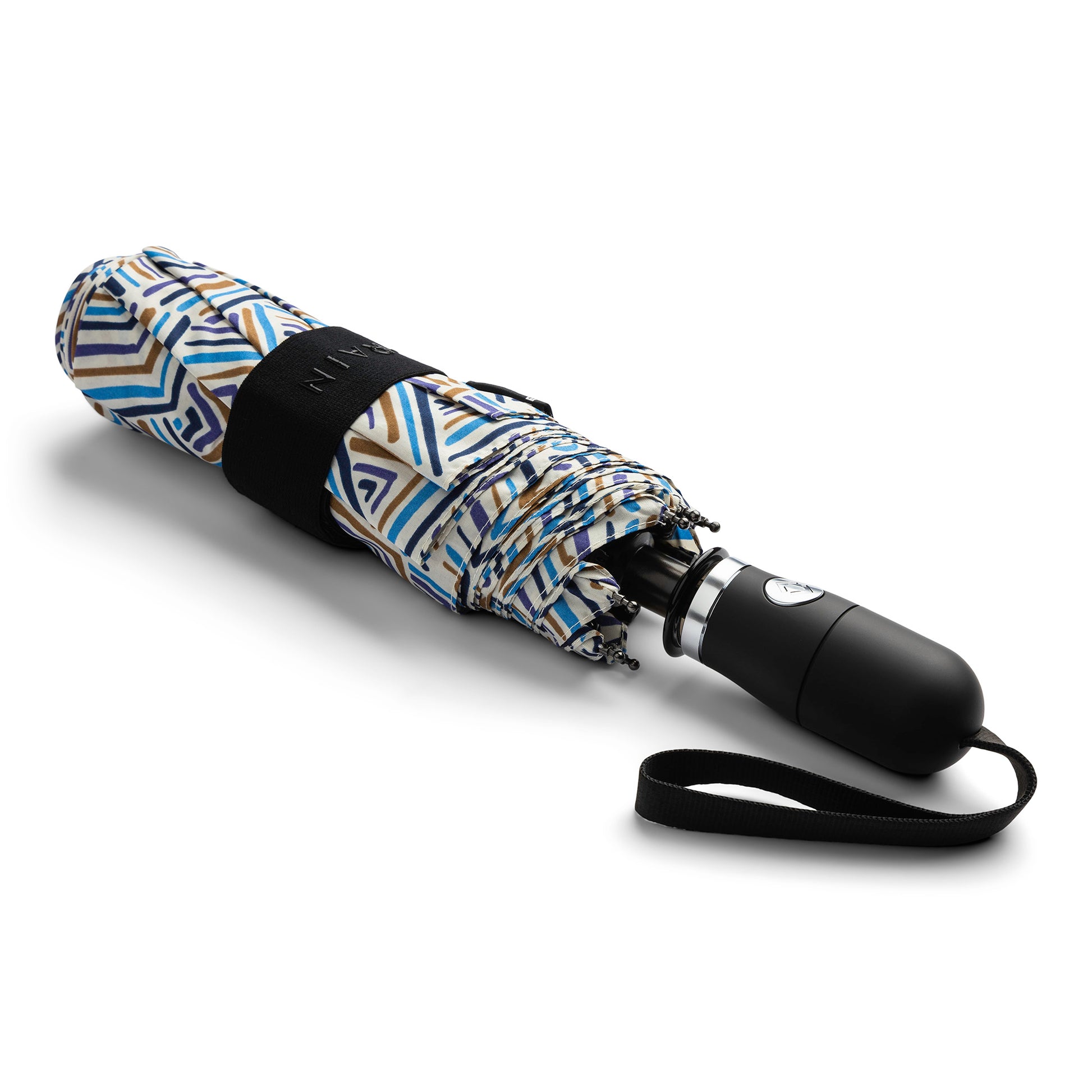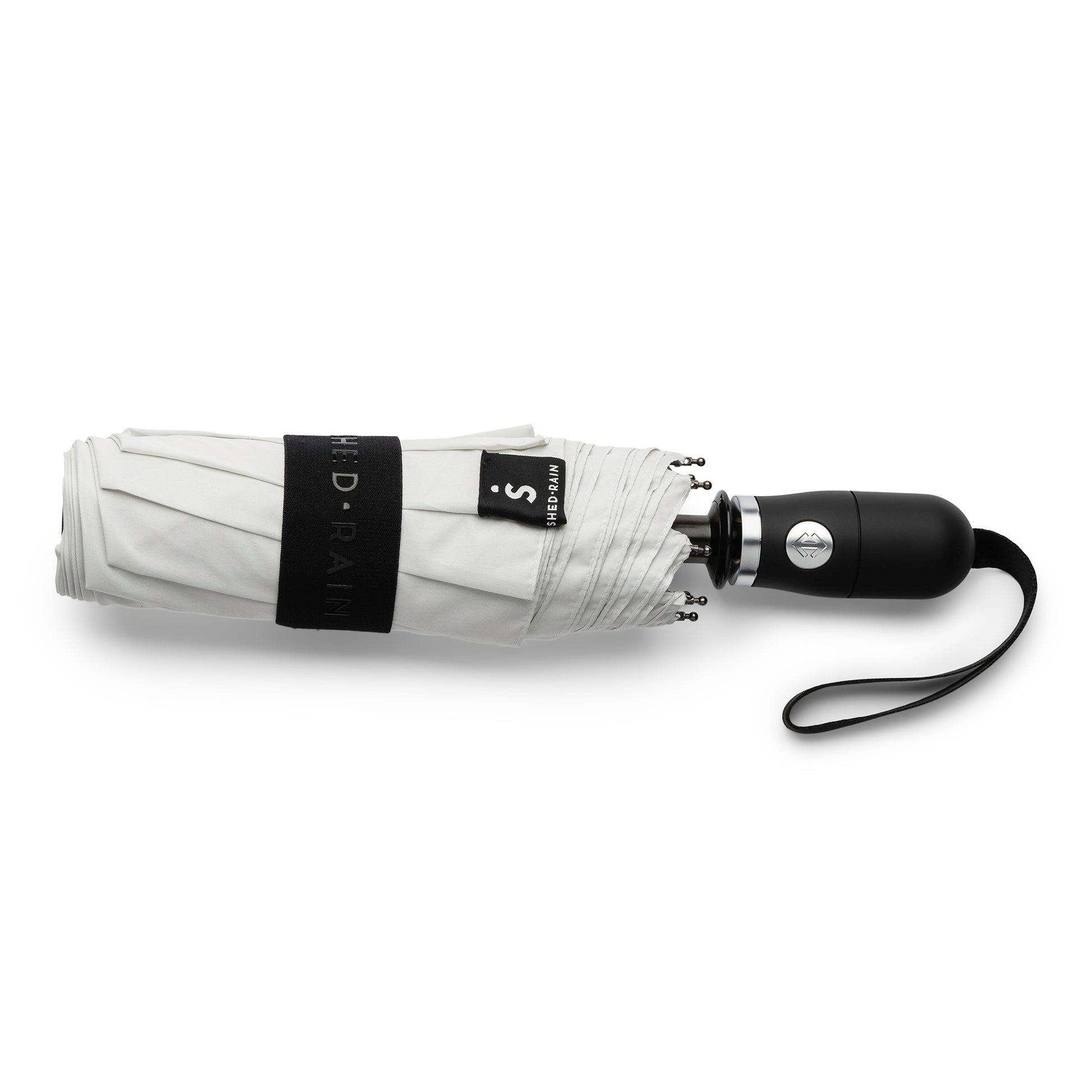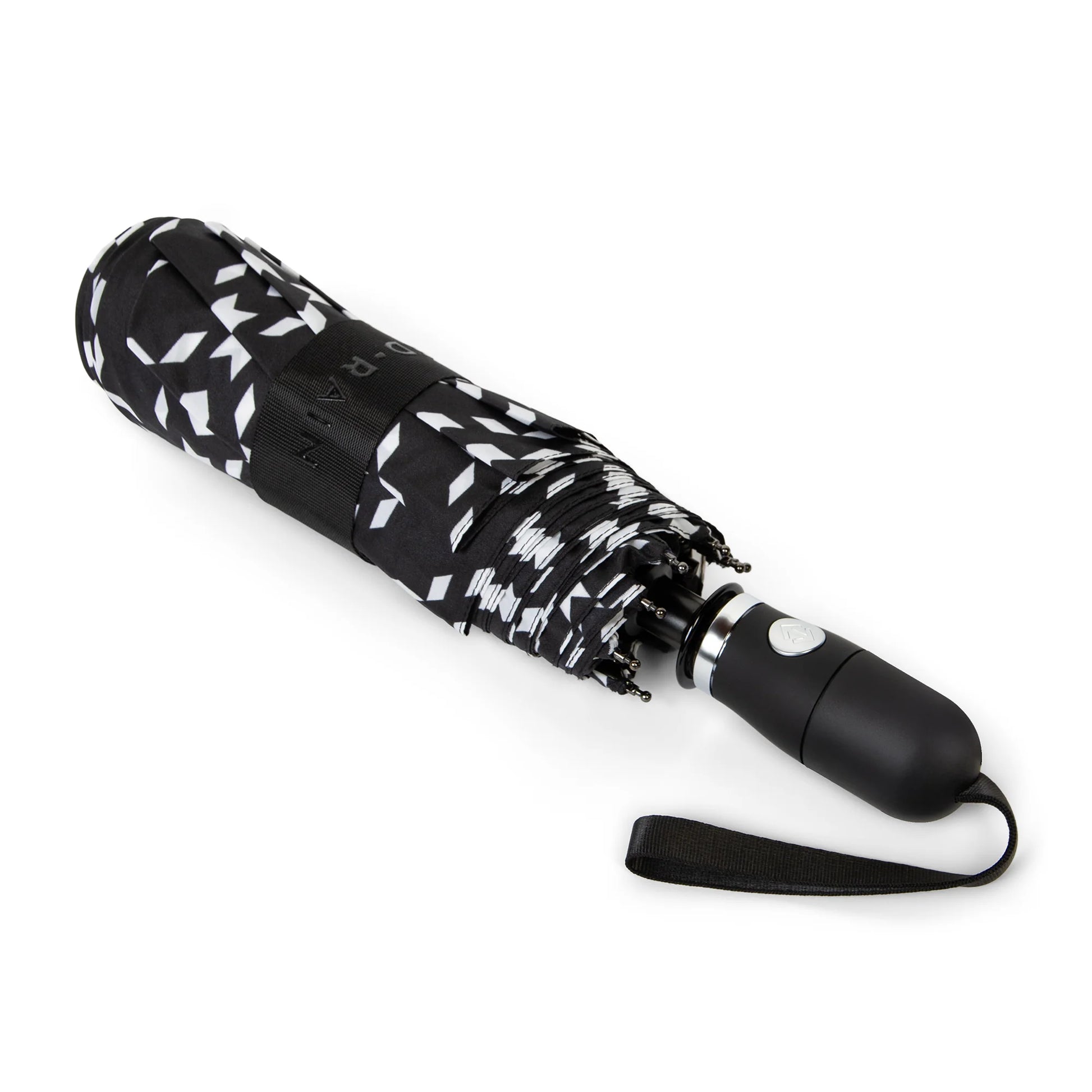 Combining convenience and practicality, this may be our best windproof compact umbrella for travel or commuting. With our automatic open and close function, it provides shelter at the push of a button. The lightweight-yet-durable fiberglass frame featuring Wind-Reflex™ technology stands strong even in heavy wind and rain. And the recycled-polyester canopy boasts a roomy 43 inches of coverage with a Nanoskin® water-repellant coating. Best of all, it packs down to less than a pound and just 12 inches in length—making it an ideal everyday-carry umbrella.