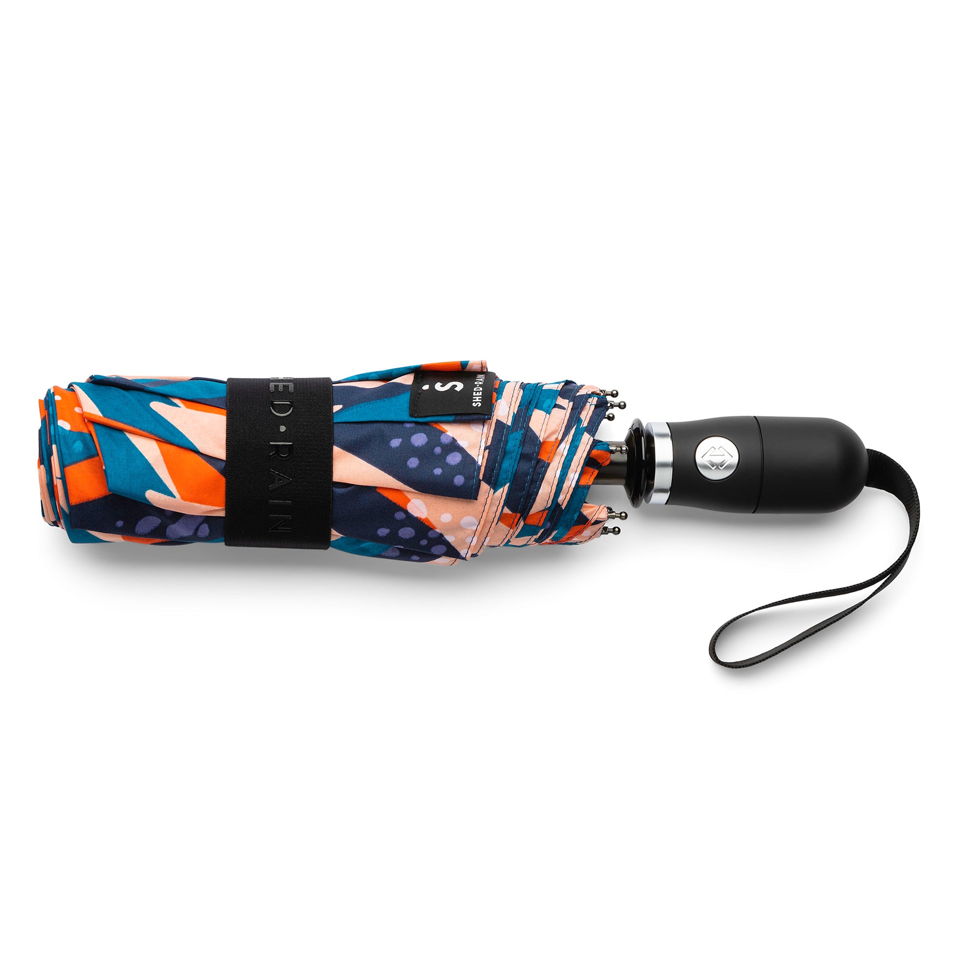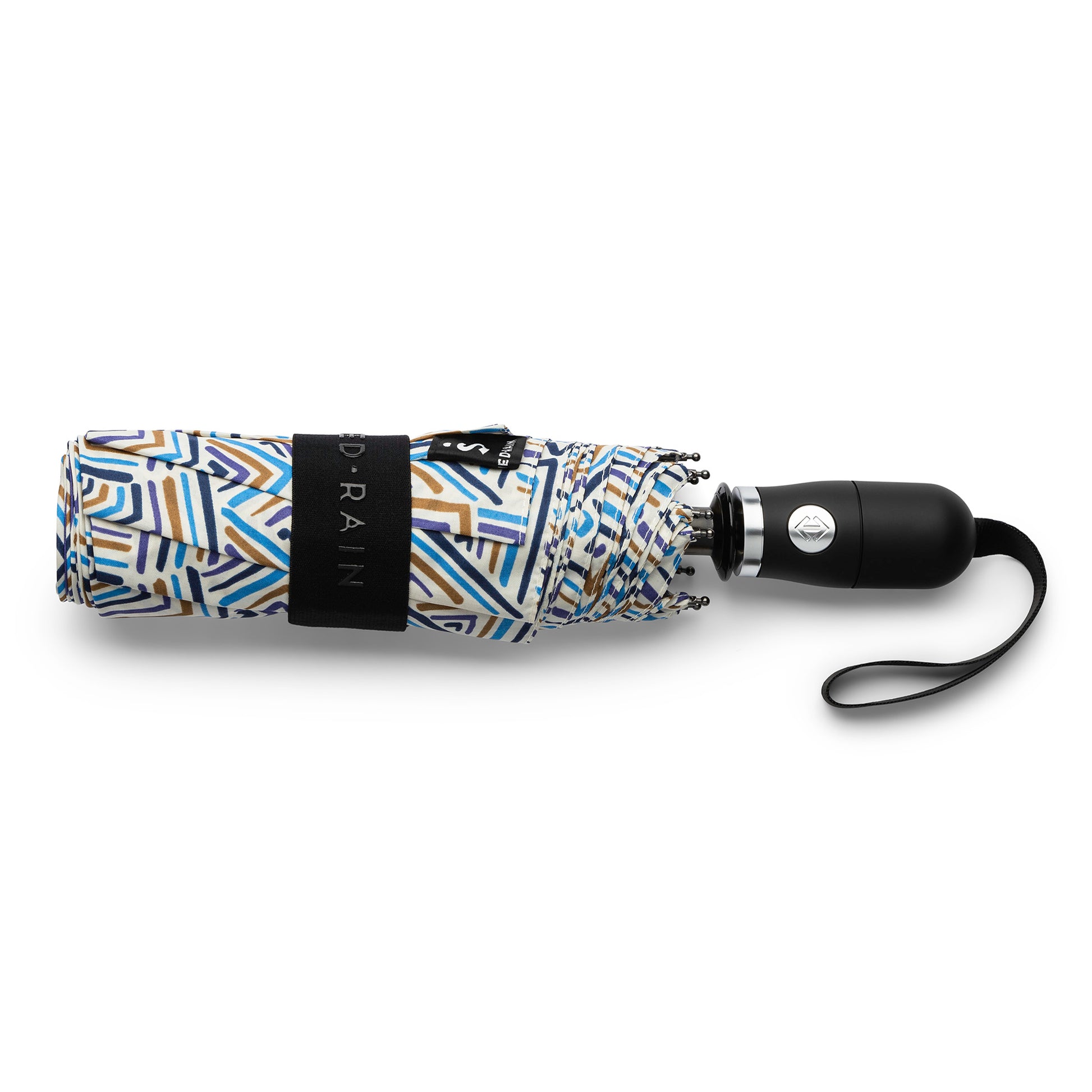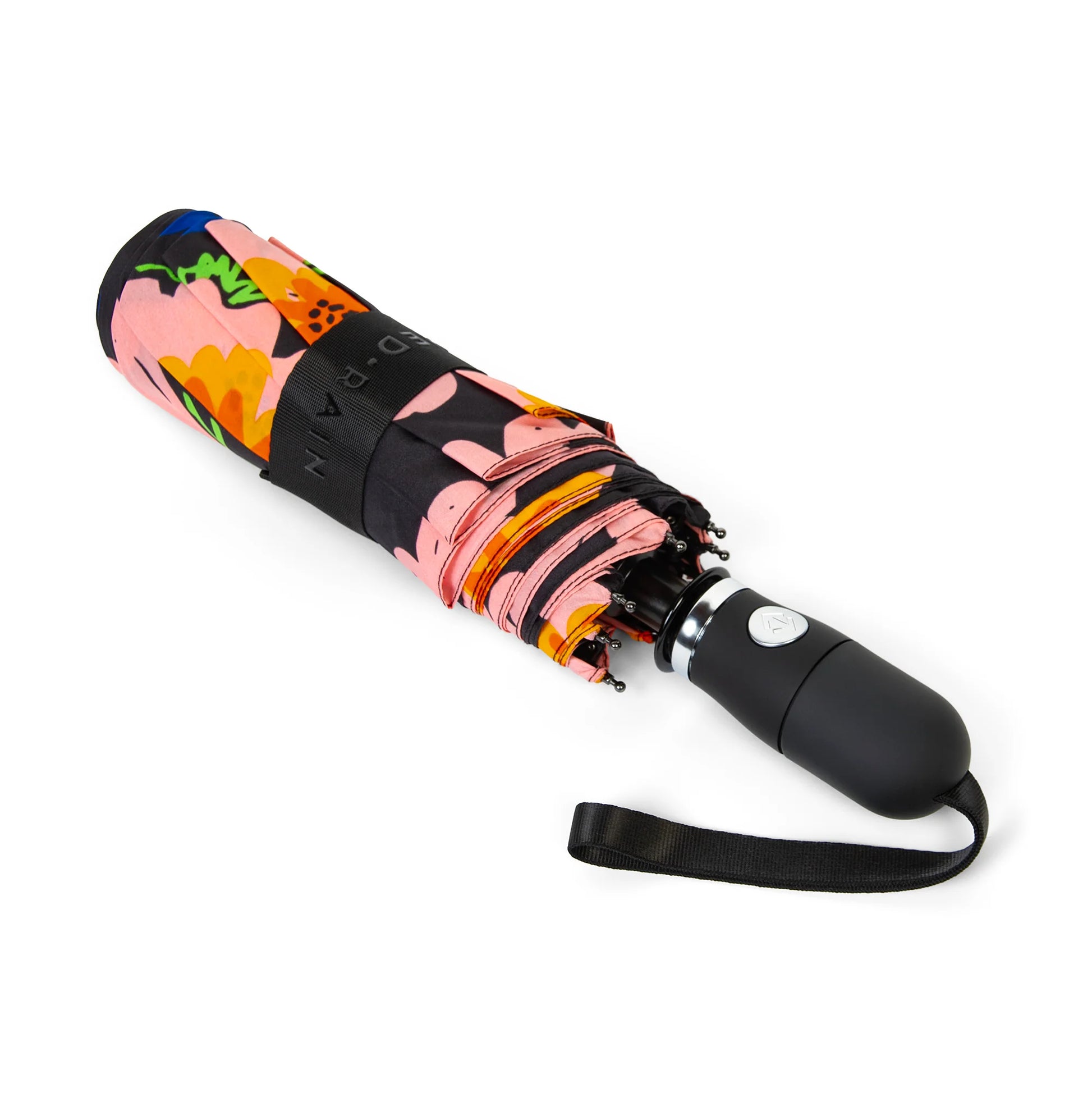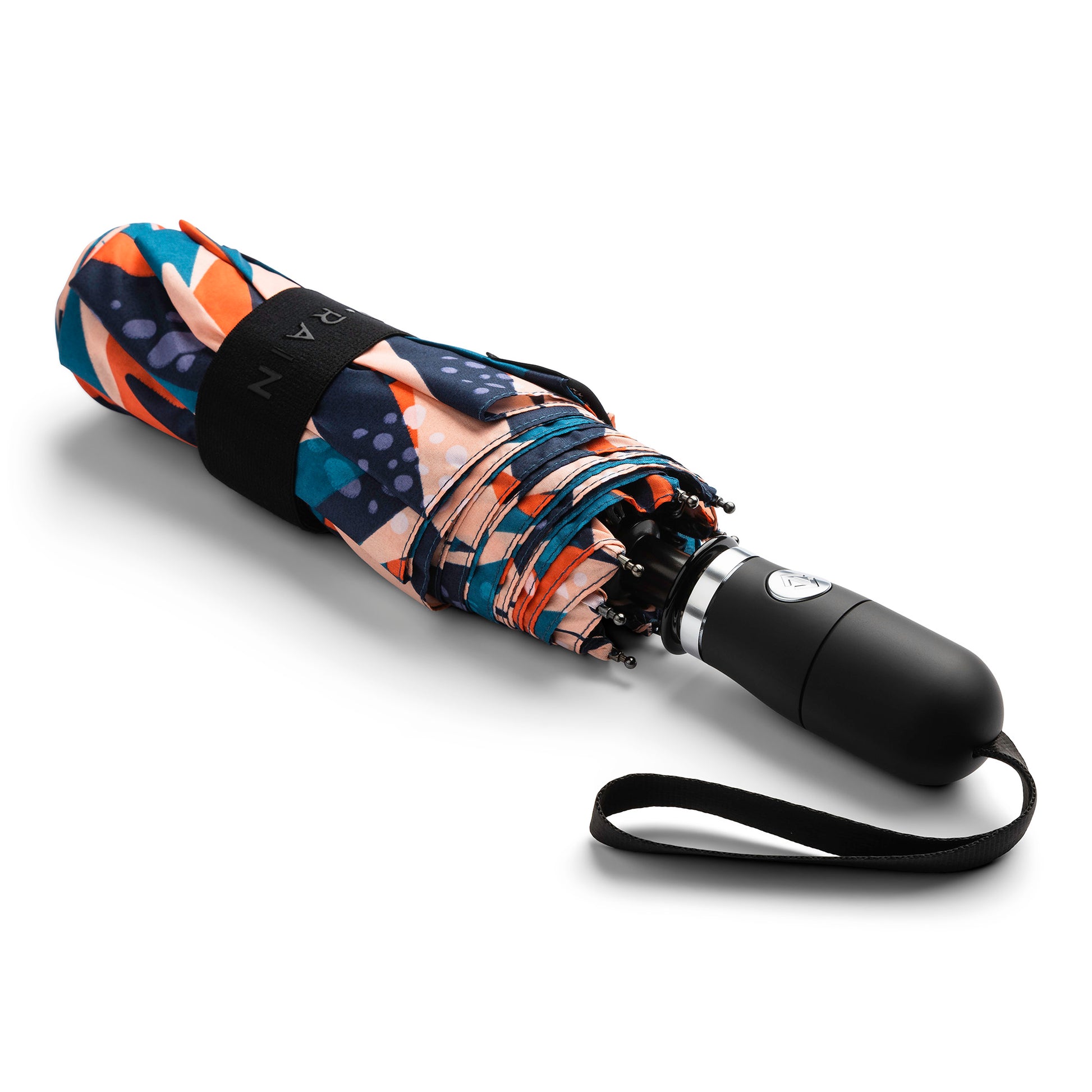 Combining convenience and practicality, this may be our best windproof compact umbrella for travel or commuting. With our automatic open and close function, it provides shelter at the push of a button. The lightweight-yet-durable fiberglass frame featuring Wind-Reflex™ technology stands strong even in heavy wind and rain. And the recycled-polyester canopy boasts a roomy 43 inches of coverage with a Nanoskin® water-repellant coating. Best of all, it packs down to less than a pound and just 12 inches in length—making it an ideal everyday-carry umbrella.