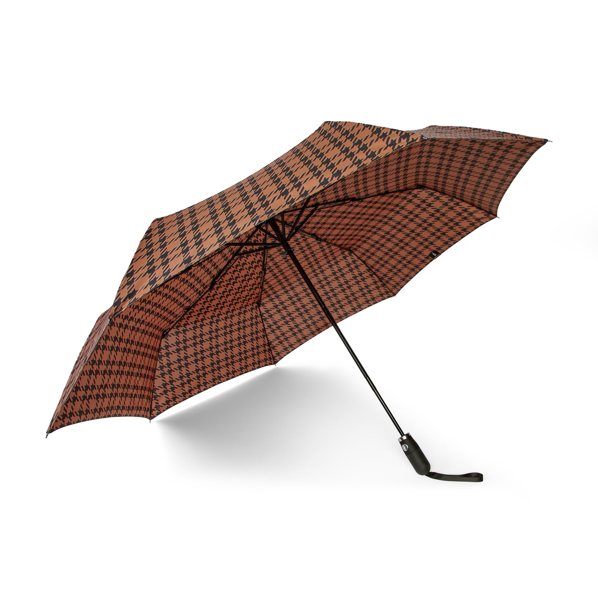 With our automatic open and close function, this Jumbo Compact offers protection from the elements with just the touch of a button. It's lightweight yet durable and impressively wind-resistant, with a fiberglass frame and our Wind-Reflex™ technology. And, while the 54-inch arc makes it roomy enough for two people (or one and a four-legged friend), it packs down to just 15-inches when closed, for convenient carry. The recycled polyester canopy features a Nanoskin™ water-repellant coating and UPF 15 UV protection, so it's a great option for both sun and rain—the perfect dual-purpose umbrella.