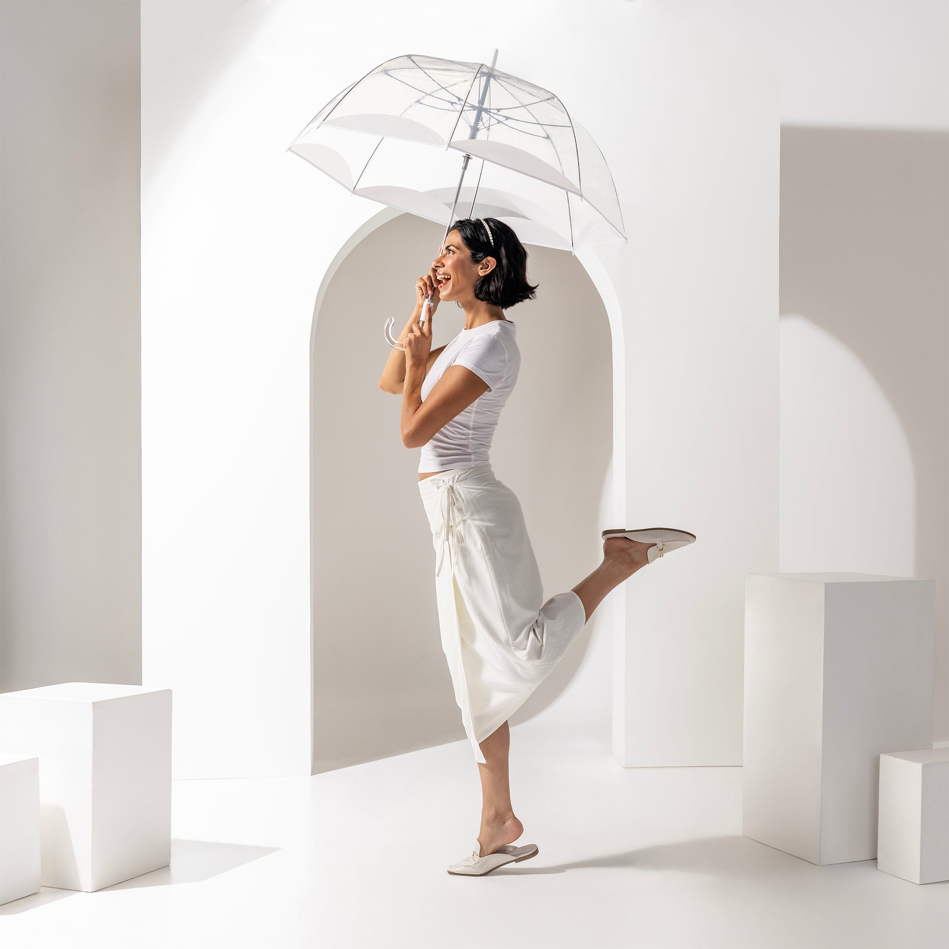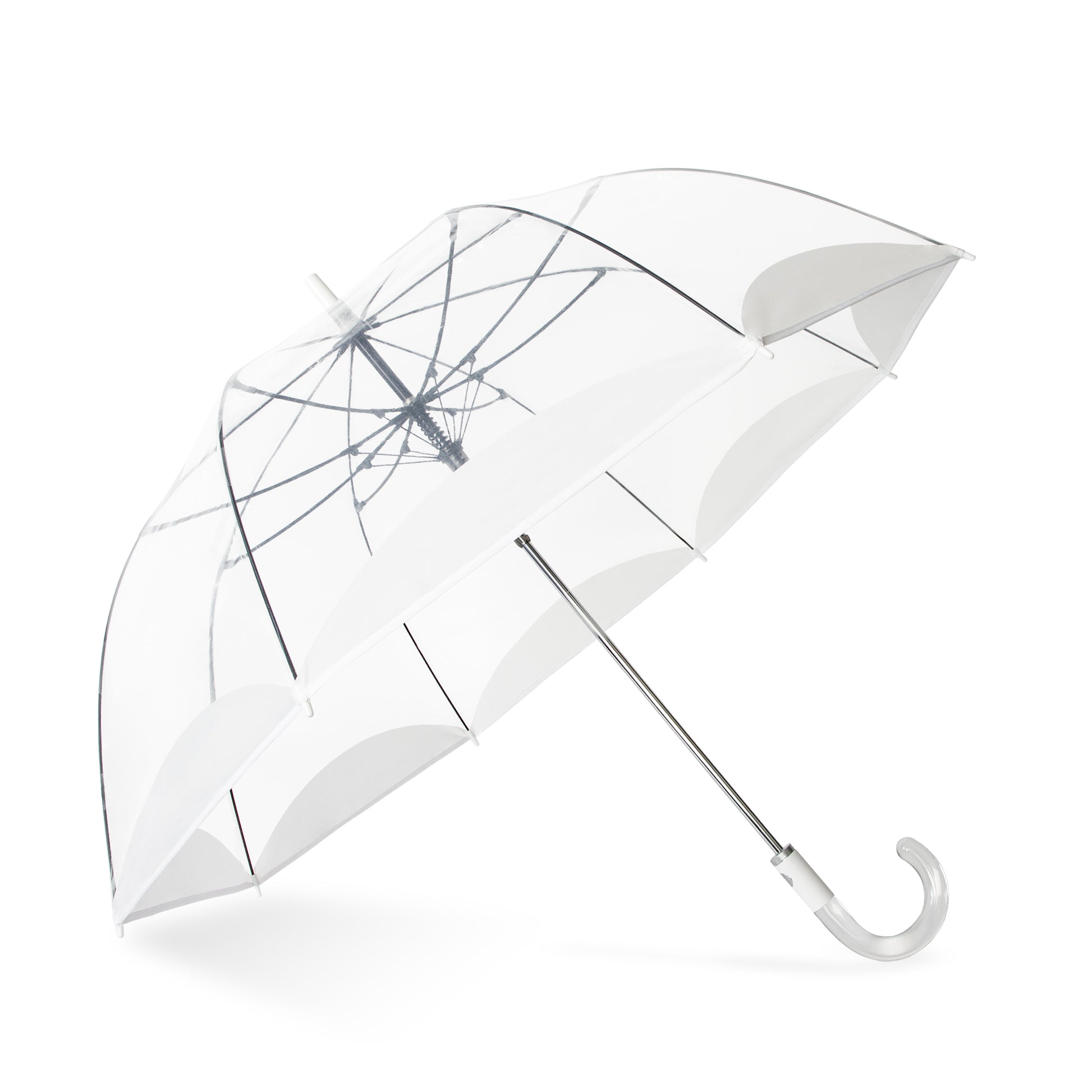 Perhaps the most iconic silhouettes in modern history, the clear bubble umbrella never fails to make a statement. With our automatic open function, you get coverage from the elements with just the press of a button. And thanks to its see-through canopy, this clear dome umbrella gives you maximum coverage without obstructing your view, while the colored border pattern and clear acrylic crook handle bring added touches of luxury and style. Whether it's a wedding, outdoor event, or a walk through the neighborhood, this umbrella brings timeless fashion and practical, convenient design.