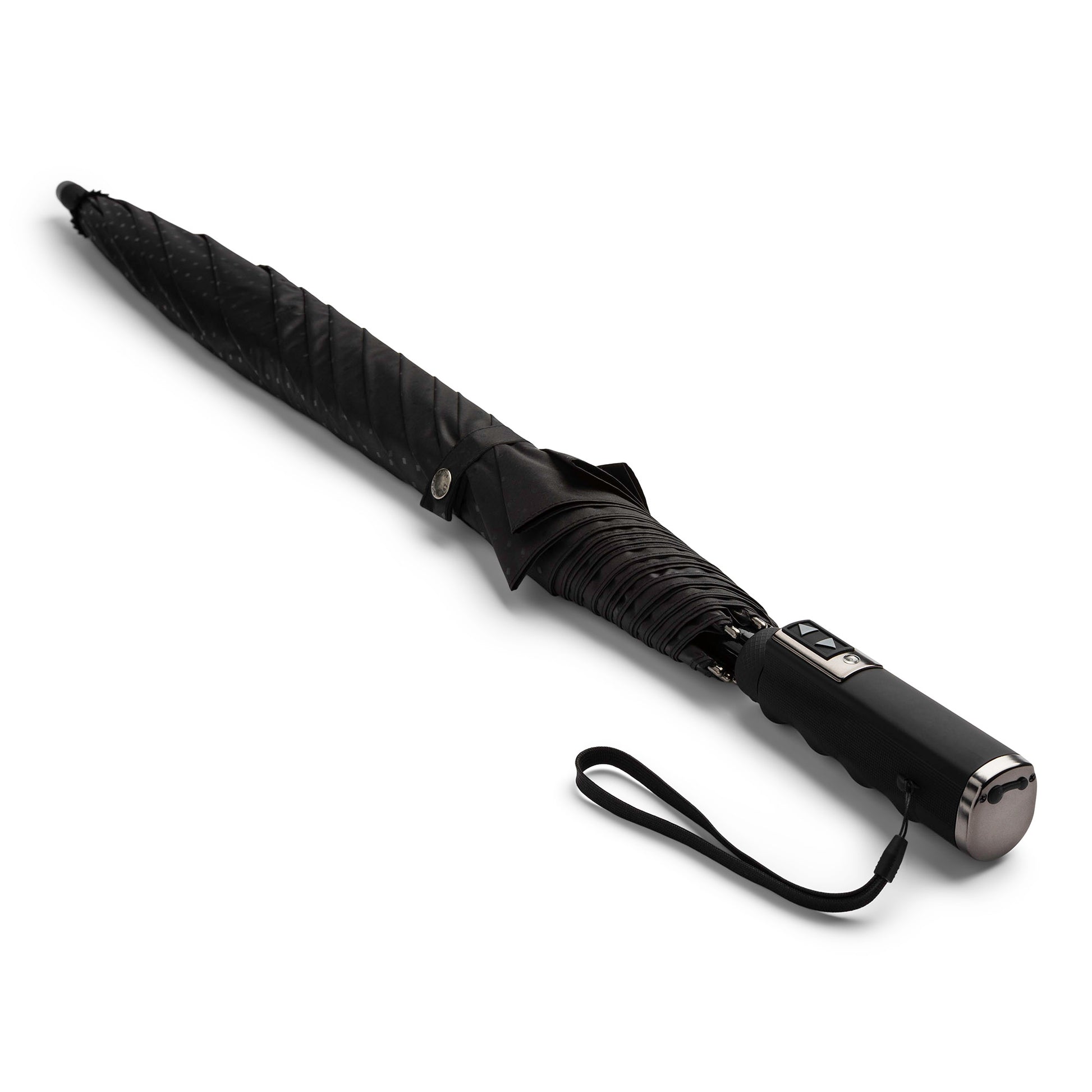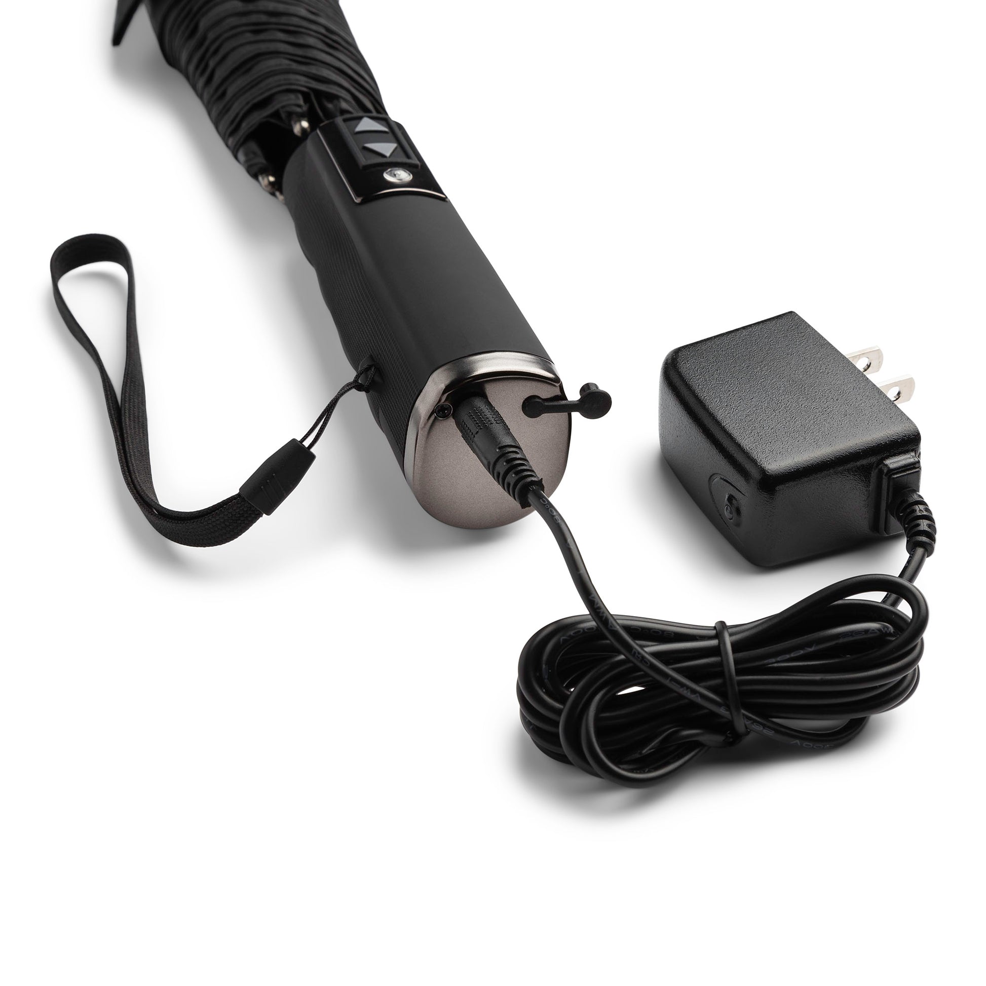 Our signature e-Motion technology, designed for the golf course. This umbrella opens and closes completely at just the touch of a button. Fully motorized, and rechargeable, the e-Motion Stick umbrella specializes in convenience and practicality. Outfitted with durable fiberglass ribs and a 58-inch Teflon®-coated canopy it offers roomy and dependable protection for you and a friend. Whether it's a round of golf or a walk in the park, this little game-changer is up to the task.