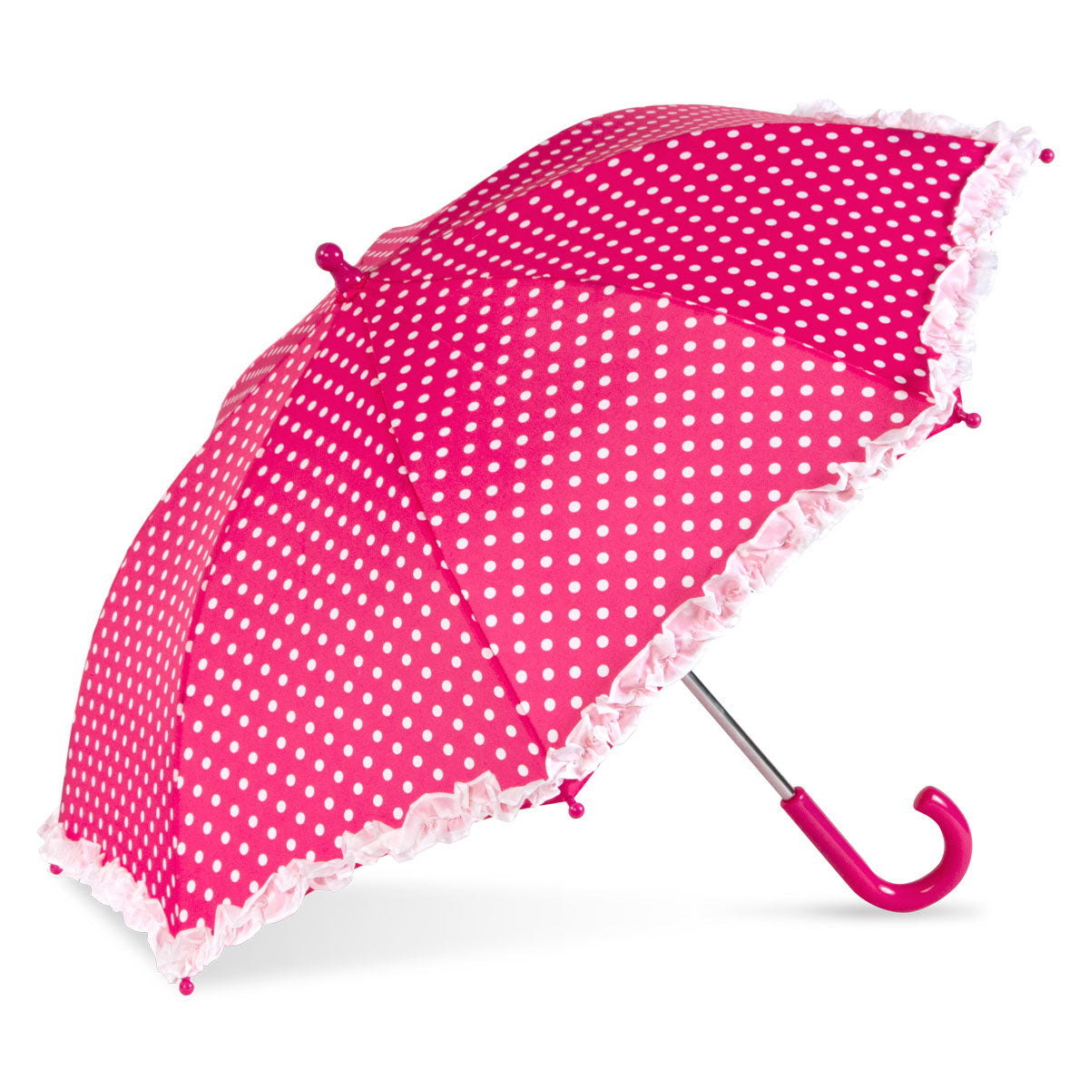 Bring smiles to rainy days with this kids' pattern umbrella! Designed specifically for children, this mini umbrella has an impressive 33-inch canopy arc to keep them covered outside, and it folds down easily, to travel with them to school, the sports field, or the playground. It features a pinch-proof runner and easy-grip handle, for safety and comfort. The steel shaft and fiberglass ribs give it a strong and sturdy frame, while the playful patterns like camo and pink are fun for boys and girls alike.