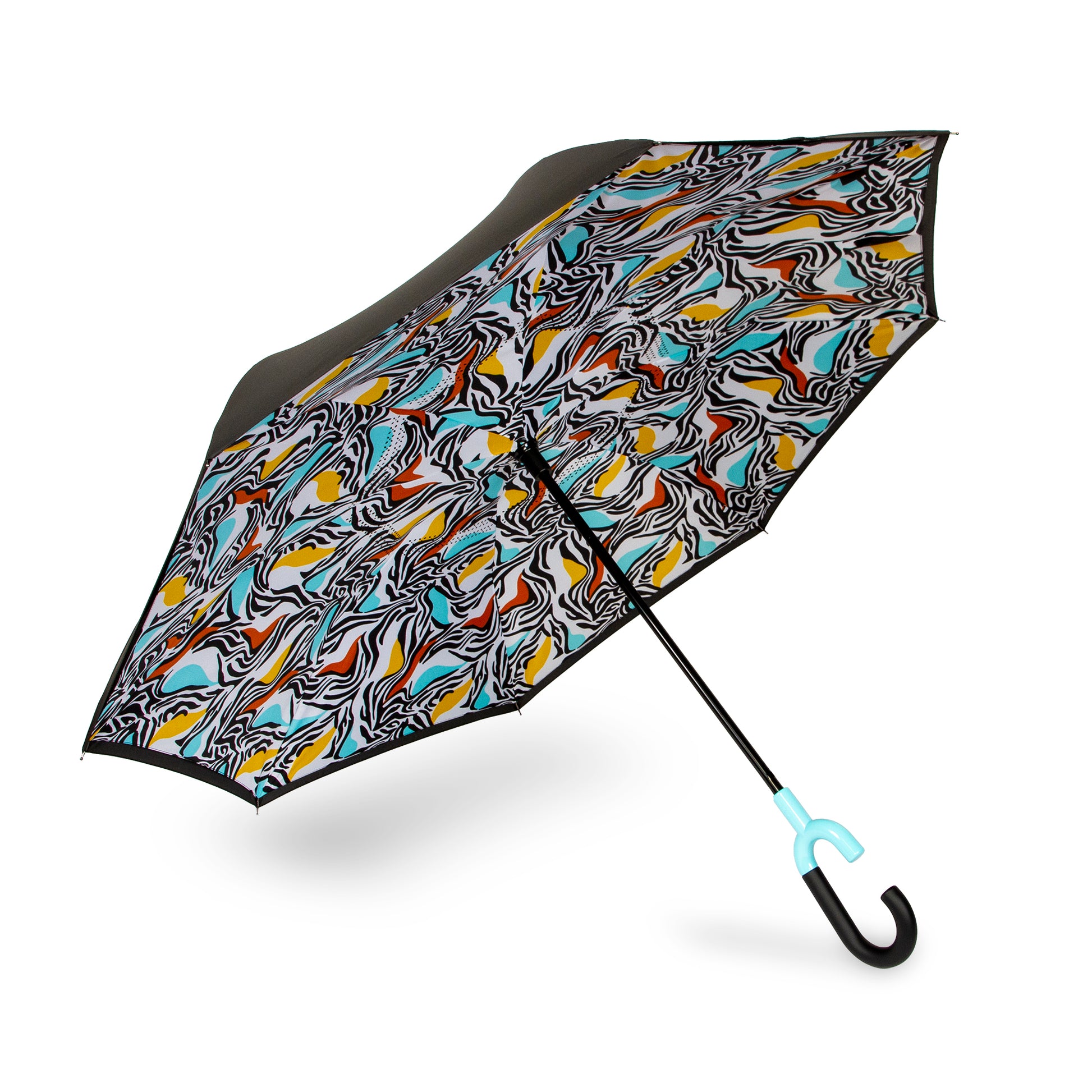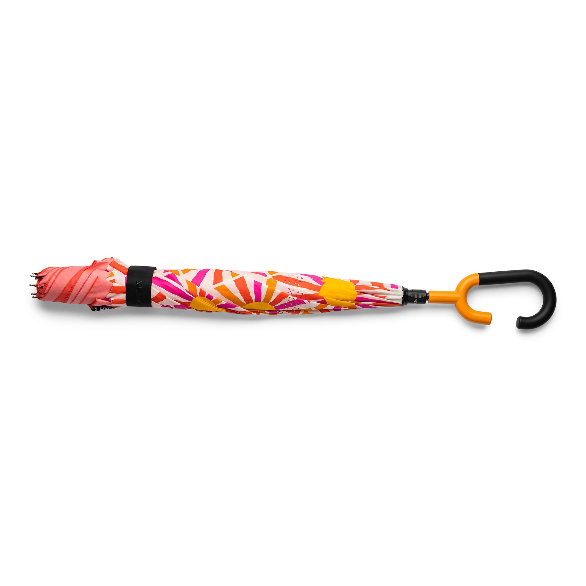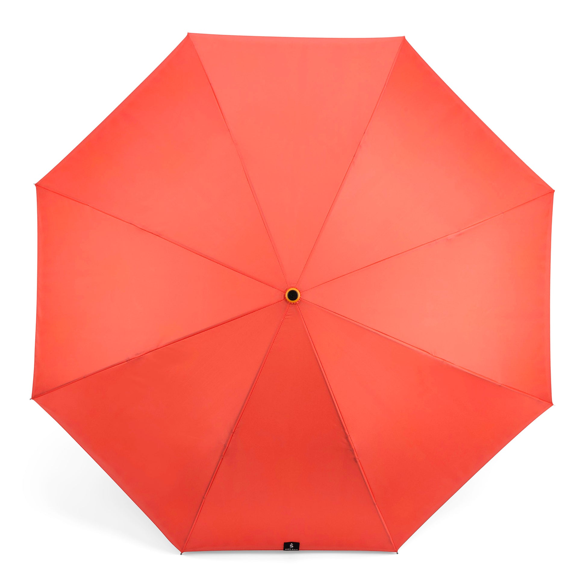 The inverted design of our reverse-closing umbrella delivers maximum weather protection. The canopy creates a cone as it closes up, funneling water away for an even drier experience when entering or exiting a car or building, making it a great car-commuter umbrella. Meanwhile, the recycled polyester canopy features UPF 50+ UV protection, for a dual-purpose umbrella that performs in sun and rain. And the C-shaped handle rests comfortably on your wrist, allowing you to easily hold a coffee, phone, or handbag. It's a high-quality umbrella with a high-IQ to match.