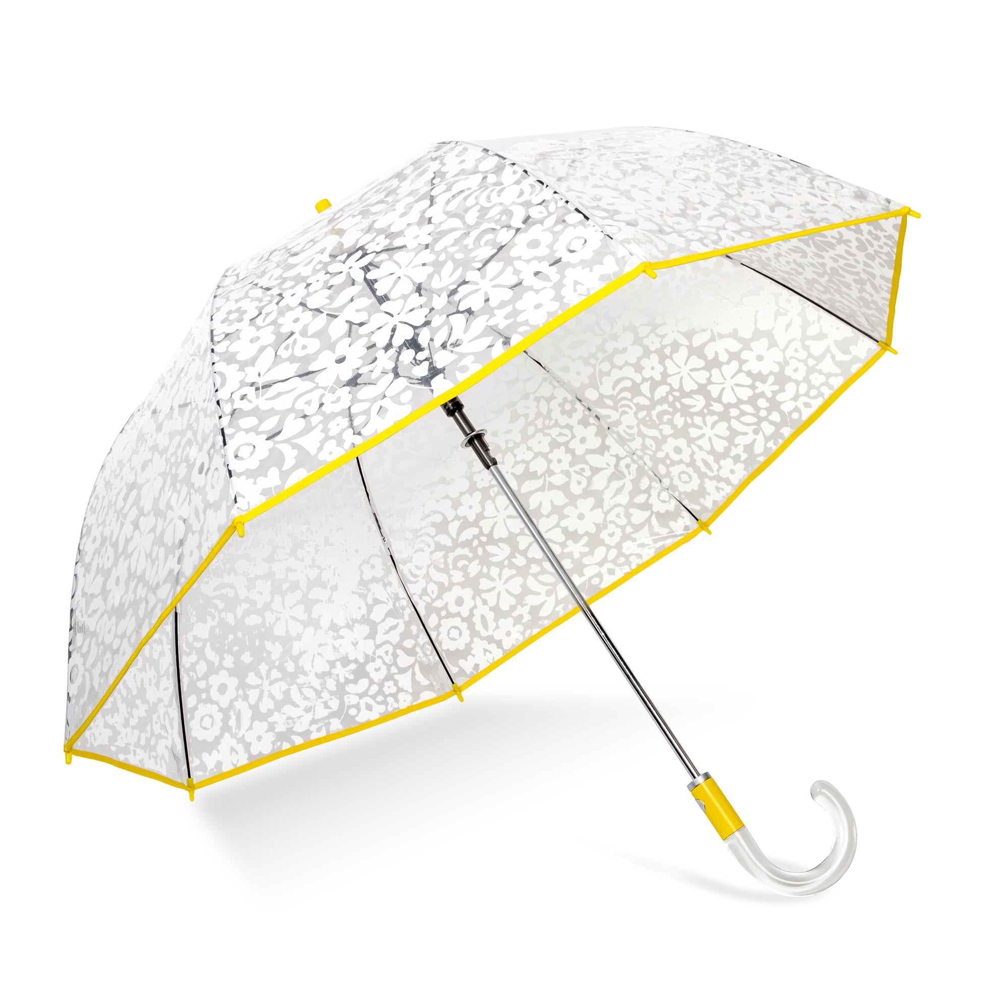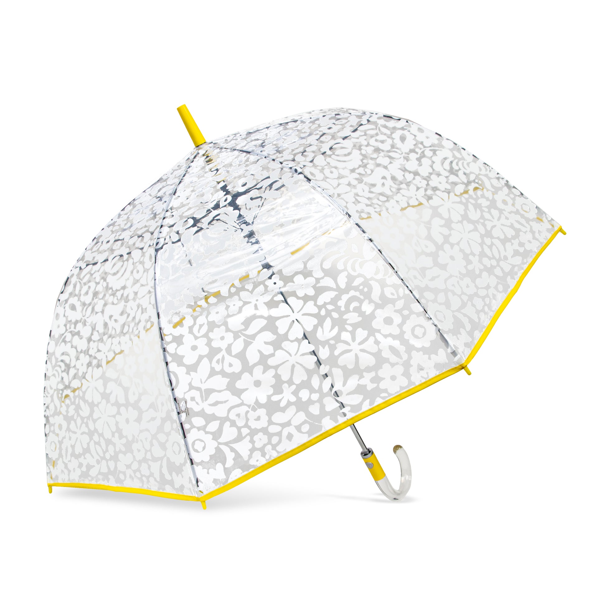 Trina Turk’s energetic yellow Poolside Gossip print creates a beautiful see-through canopy accompanied by sturdy fiberglass ribs and a chromed steel shaft, resulting in a flawlessly functional bubble umbrella that keeps you well-protected and your vision clear in style.