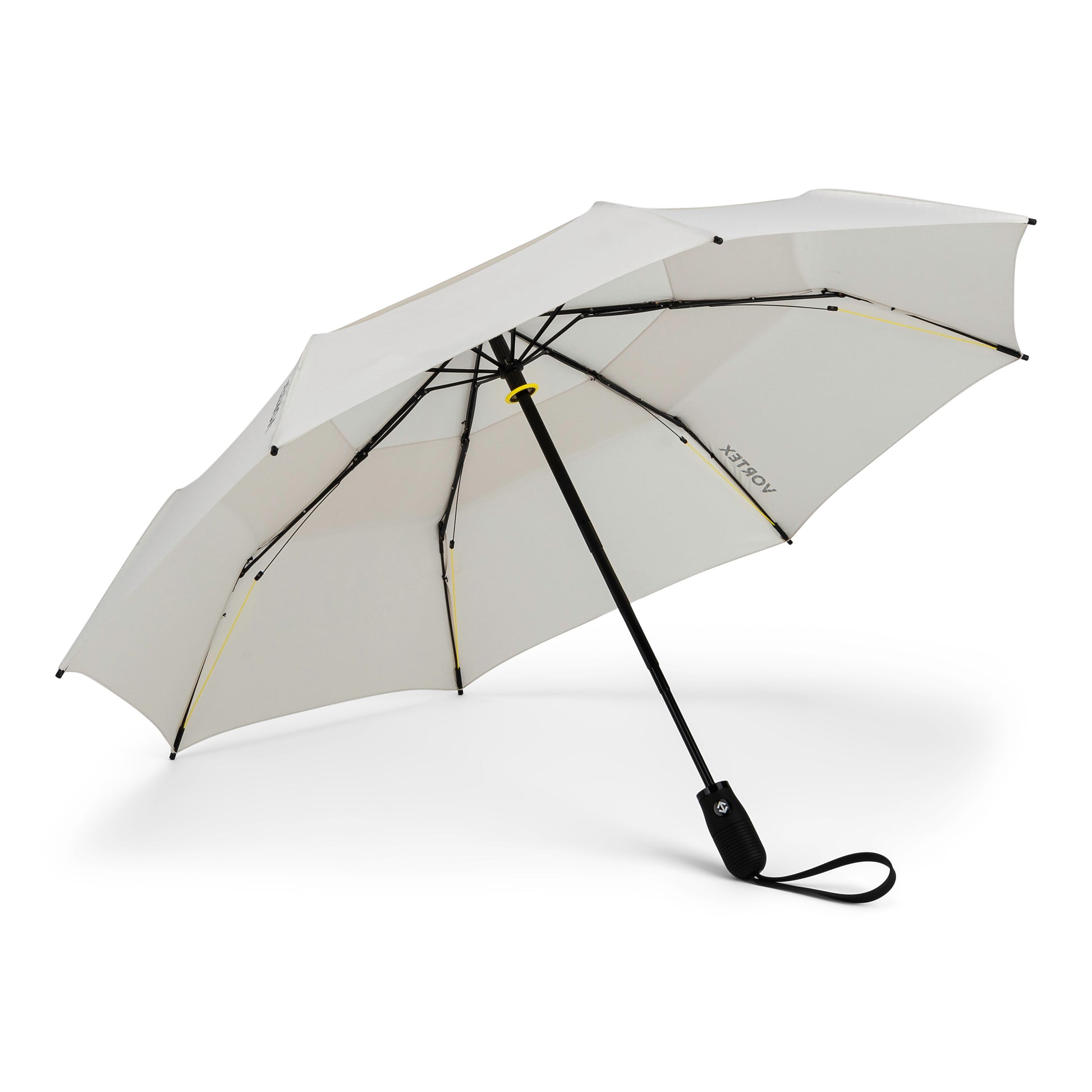 This compact windproof umbrella is small, yet impressively strong. Featuring steel ribs and shaft, an anti-inversion frame system, and strategically placed canopy vents to allow for airflow, it’s wind tunnel-tested and proven to resist winds up to 75 mph without flipping inside-out. The 43-inch canopy arc offers ample storm coverage with the press of our automatic open and close button. And it packs down to just 12 inches long, easily fitting in a handbag, backpack, or travel carry-on. It’s the perfect heavy-duty compact umbrella for world-travelers and work-commuters alike.
