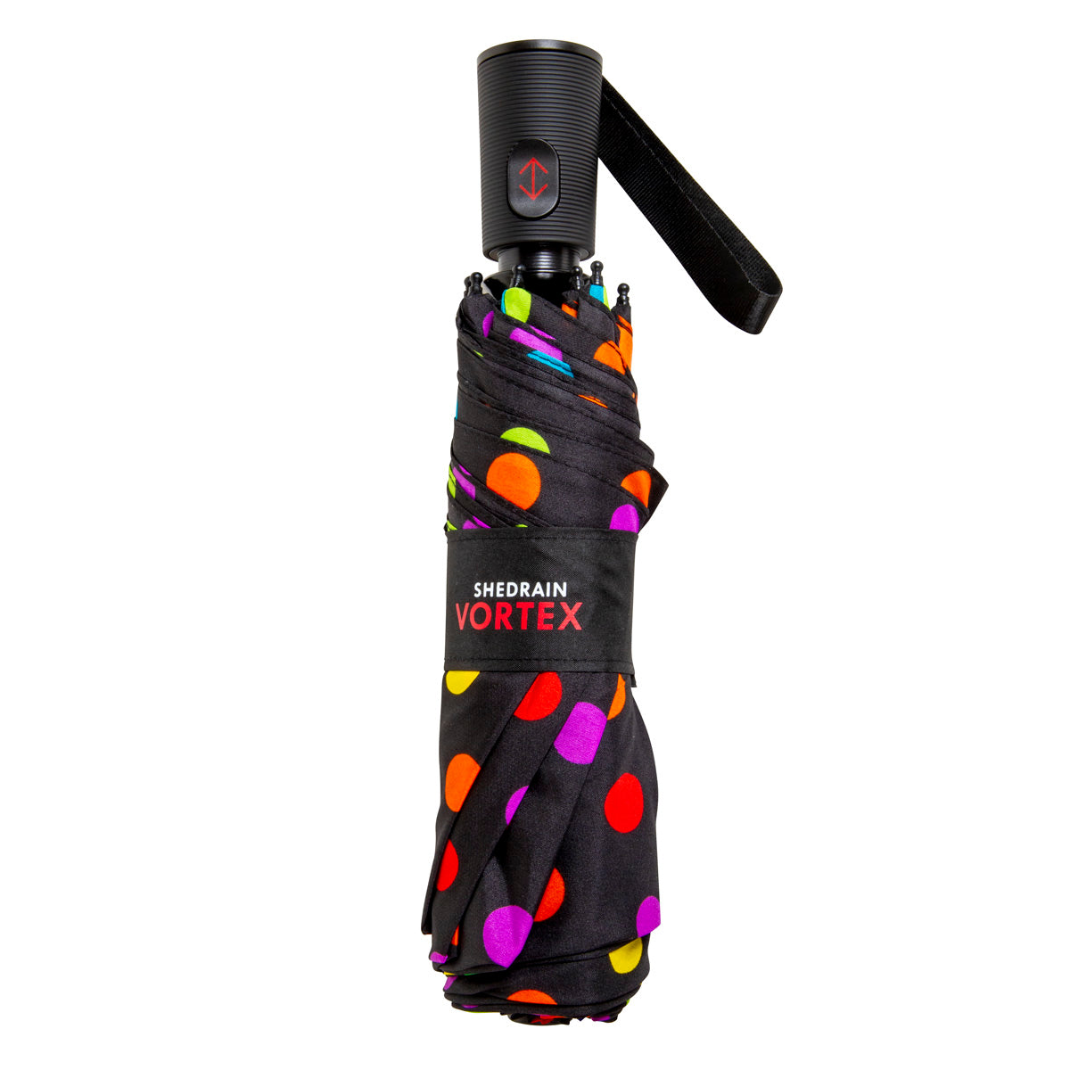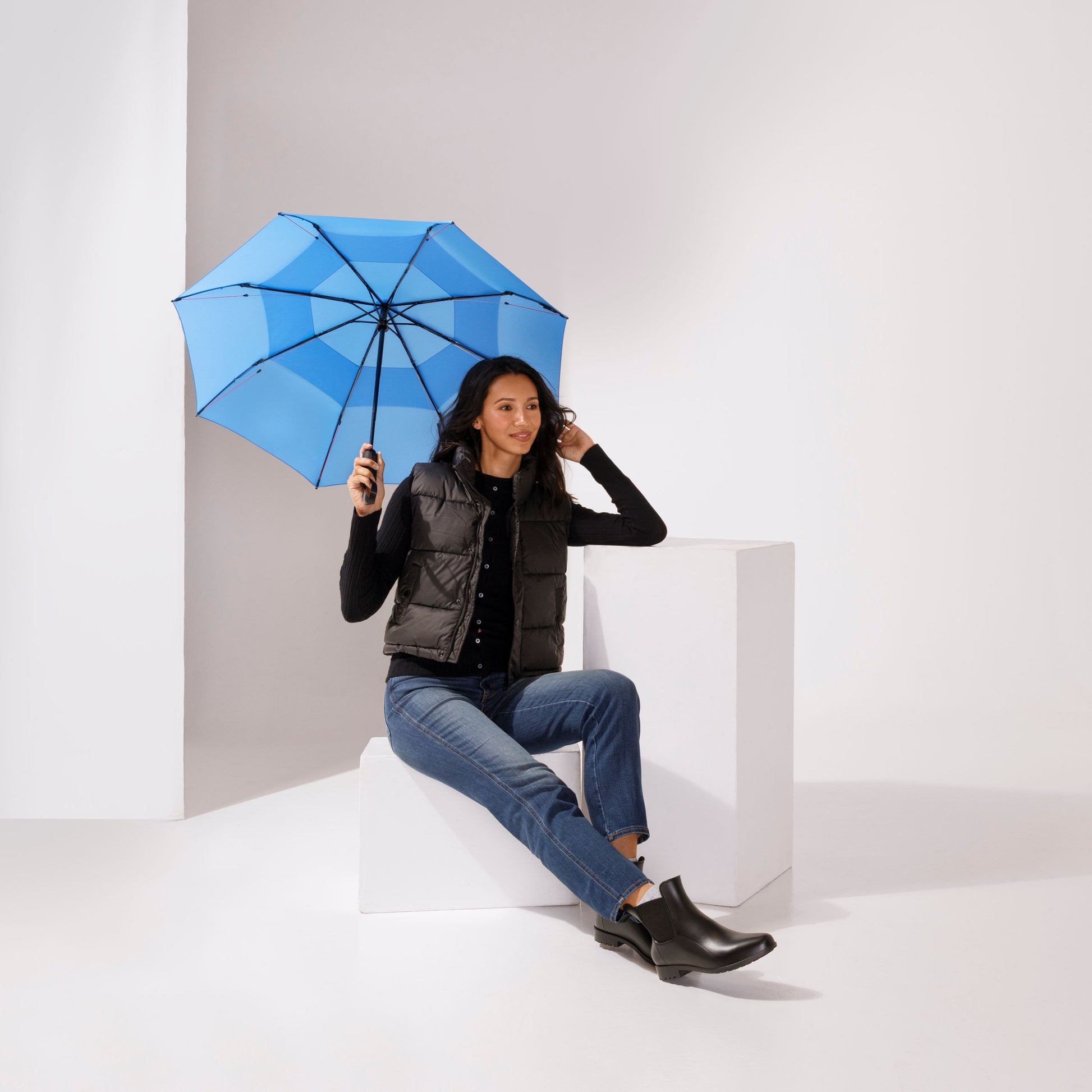 The original compact to feature Vortex Technology, this windproof umbrella boasts a vented canopy and a sturdy steel frame, reinforced with our patented Cable Enforced Technology®. It's designed and wind tunnel-tested to resist winds up to 75 mph without flipping inside out. The UV protection of UPF 15 makes it a great option for sun and rain, and the automatic open and close function provides coverage just the press of a button. All that while weighing less than 1 pound and closing to just 12 inches in length, it’s the perfect everyday-carry, dual-purpose umbrella.